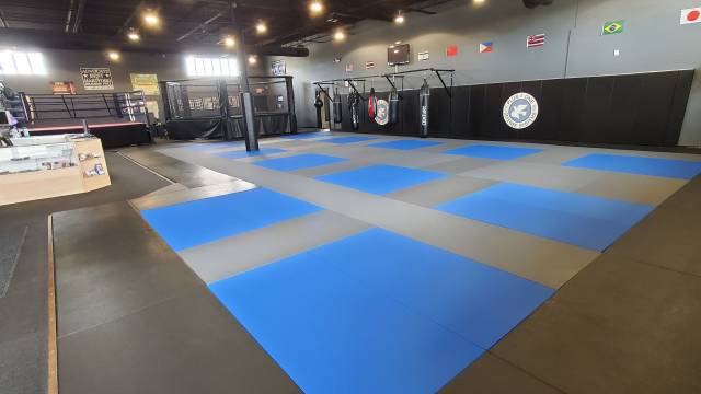 Primarily working out in the Traditional Dojo classroom, adult Kung-Fu is very well attended, and I’m happy to say that this group continues to build. We obtained new mats for the traditional area (as pictured). The mats were installed last week, and they are a huge upgrade from what we were using. (We also replaced the mats in the Contemporary Dojo, and those are fantastic, but it’s literally an apples-to-apples switch, so I’m not sure some folks will notice.)