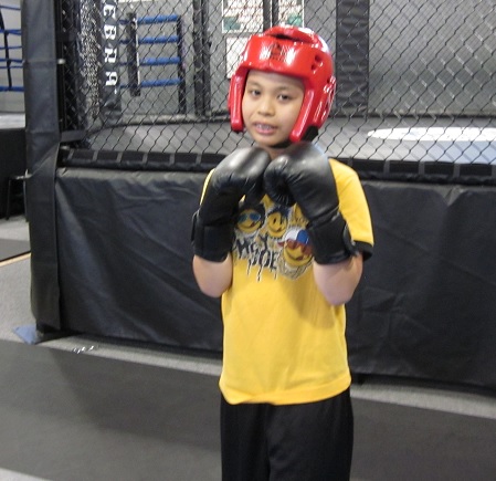 Chris says that he originally got into the martial arts because his older sister was picking on him, and he needed to learn how to defend himself. Subsequently, Chris says that, after taking the martial arts, he is now able to do just that. 🙂 He also says that he started the martial arts because he thought it would be cool to do. Currently, Chris studies Kung-Fu, Karate, and Muay Thai Kickboxing with us.