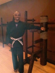 Our Student of the Month for April is… Kinte Barnes! Kinte trains in Kung-Fu, Karate, Muay Thai, and Brazilian Jiu-Jitsu. He often comes to three classes a day! Kinte (who is a very physically fit individual) told me that he got tired of the “gym” and decided to do the martial arts. He found it was a lot harder than going to the gym, and he decided to stick with it.